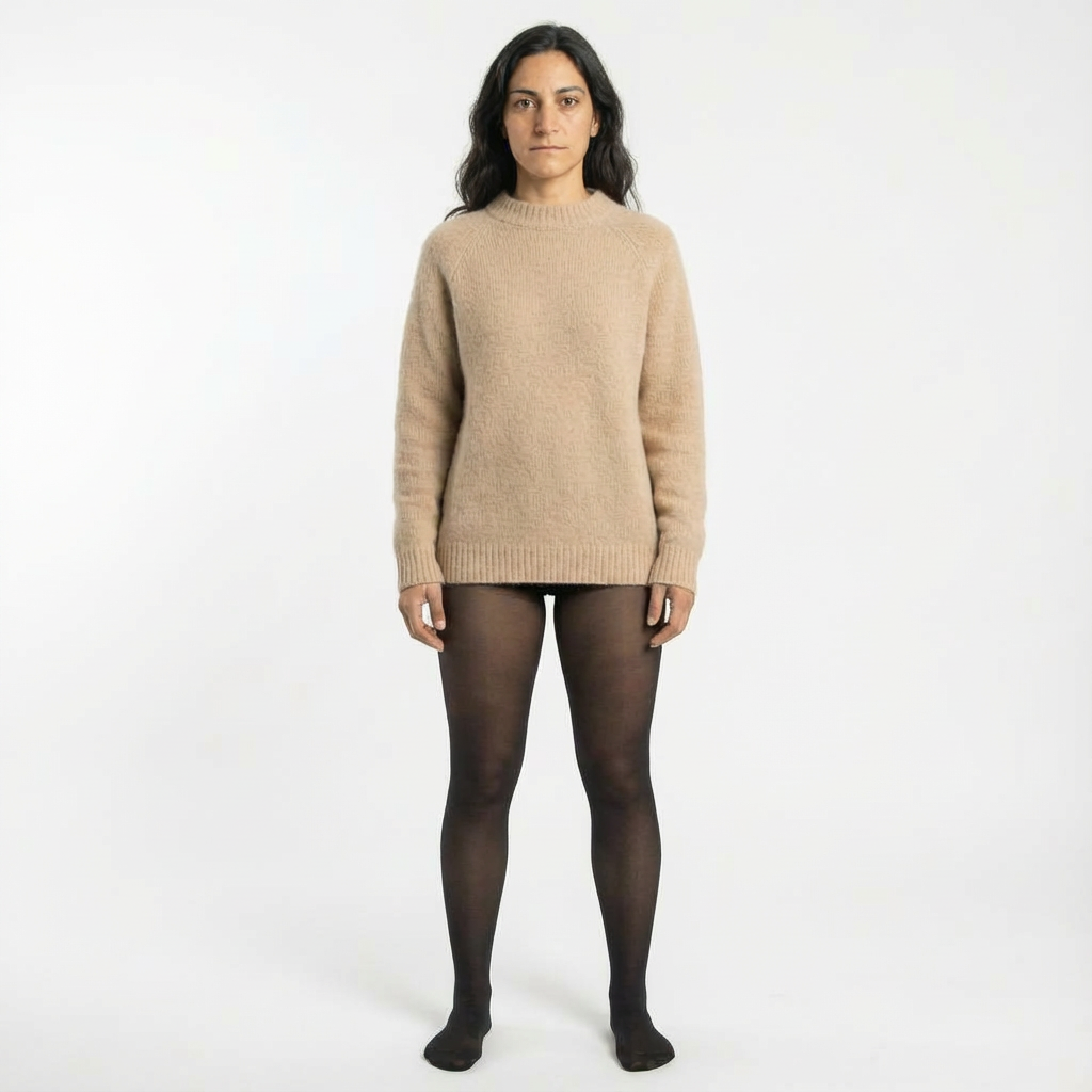 Por fuera, la media permanece fina y translúcida; por dentro, la lana polar ofrece un calor suave y acogedor.
